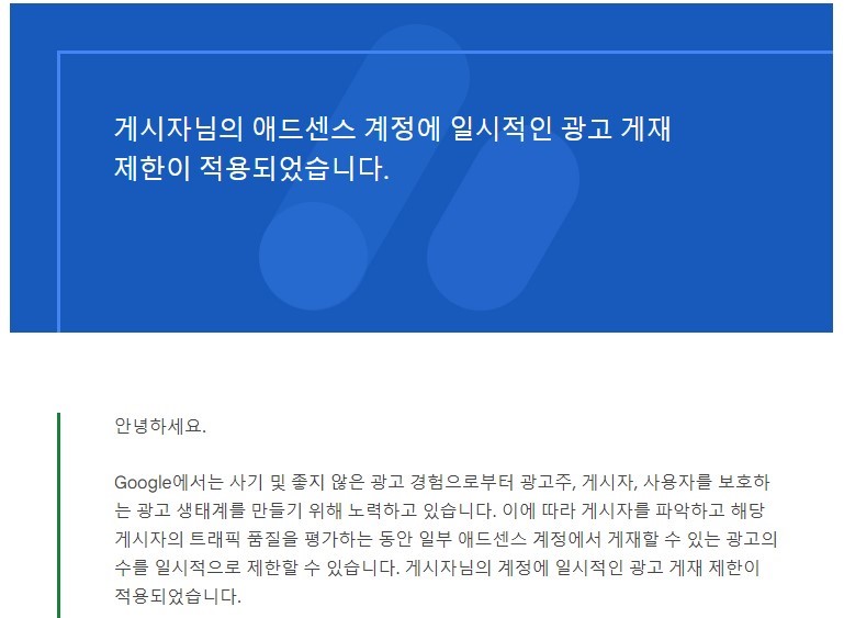 갑자기 광고 게재 제한을 당하는 경우가 생깁니다.