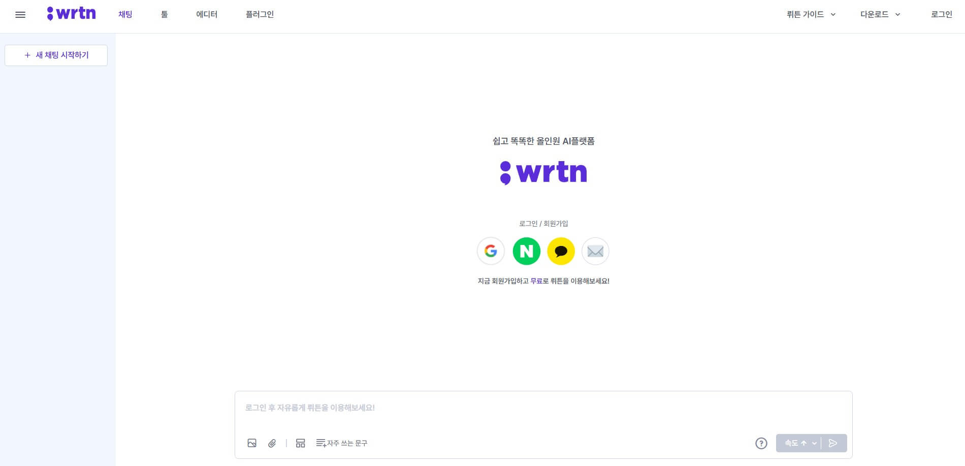 1. 뤼튼 메인화면에서 중간에 보이는 로그인/회원가입 글자 아래에
