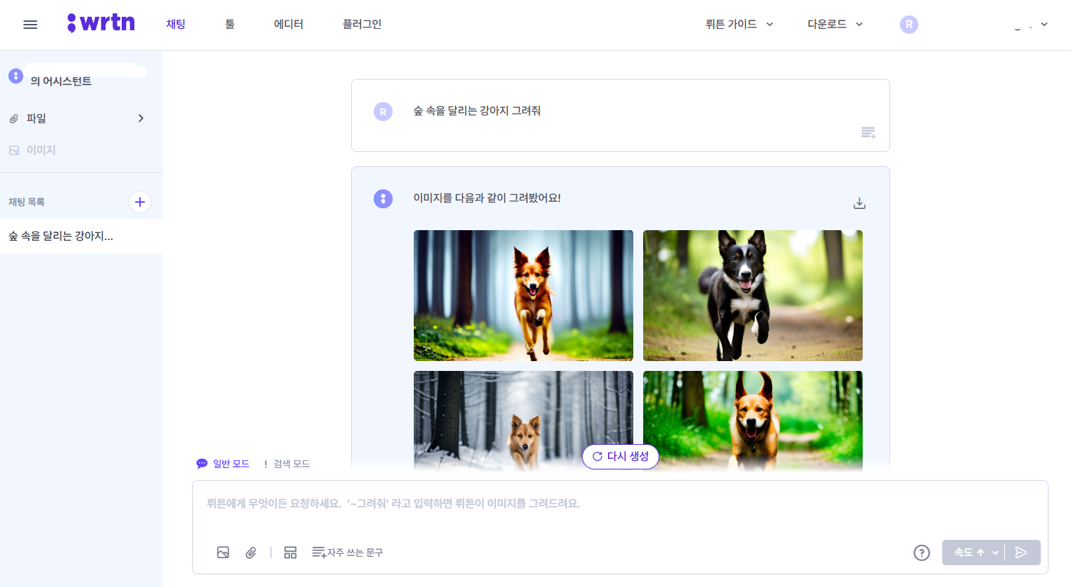 질문에 대한 응답만 하던 챗지피티와 비교하면 뤼튼은 이미지 생성도 누구나 할 수 있으며,