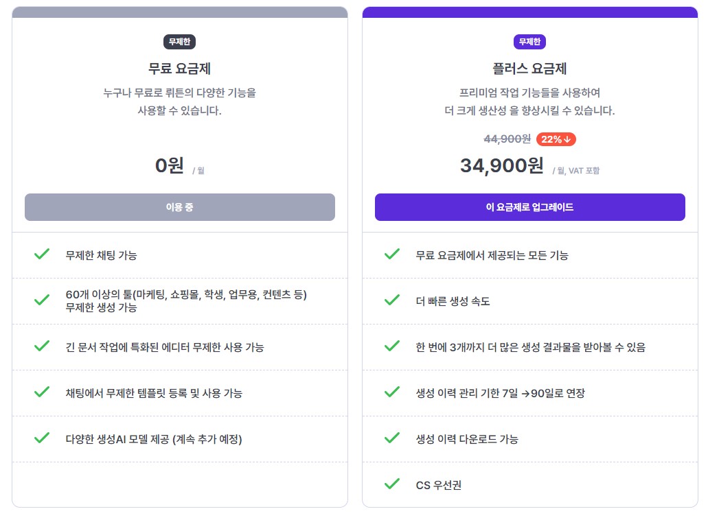 챗지피티나 노션 등 다른 서비스들에 비해 월요금제가 살짝 비싸지만