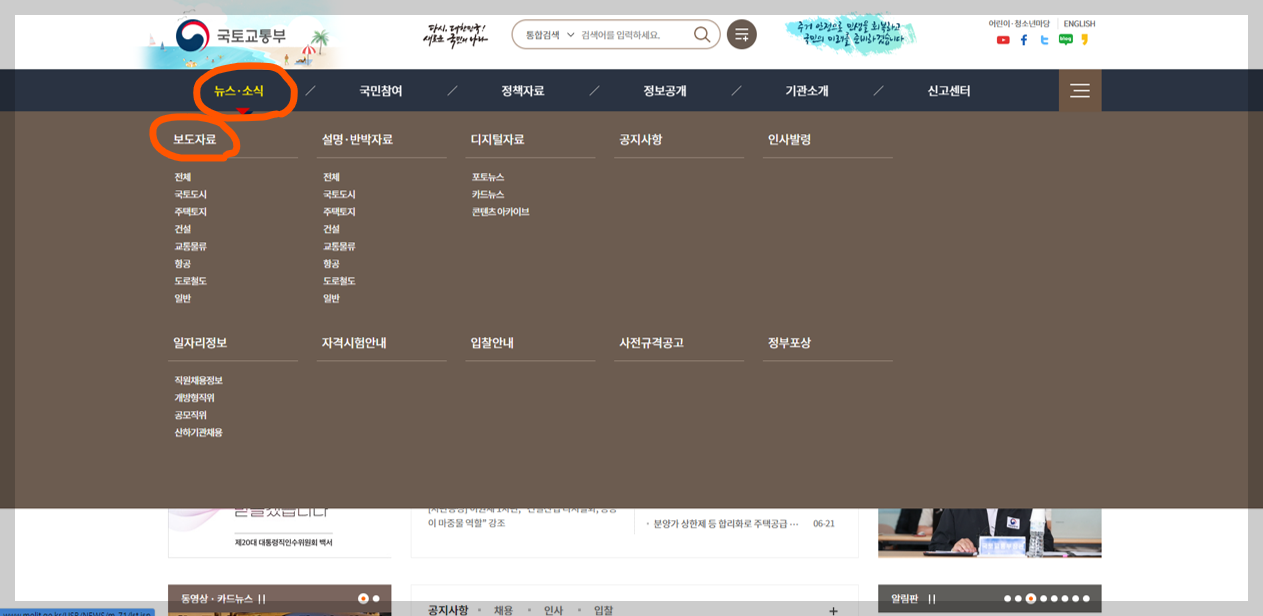 국토교통부 공식 사이트에 접속하신 후