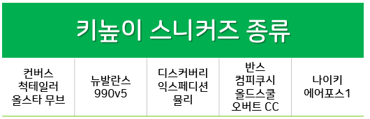 키높이 스니커즈 추천 및 모델별 특징을 소개하겠습니다